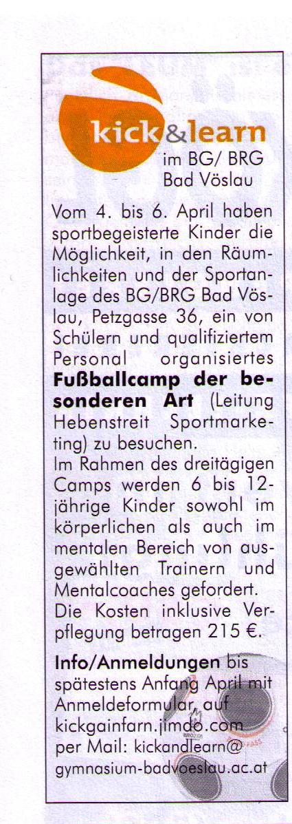 kick & learn im BRG Bad Vöslau Gainfarn
